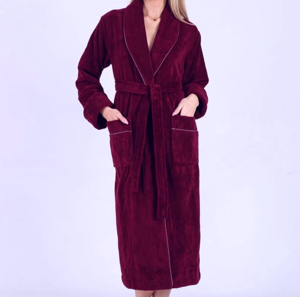 • Сушить на свежем воздухе, предварительно хорошо встряхнув изделие - Характеристики РазмерXXXLДополнительноБанный, Домашний, Карманы, ПоясТип тканиБамбуковые, Велюровые, МахровыеЦветБордоПолЖенскиеДлиннаДлинный