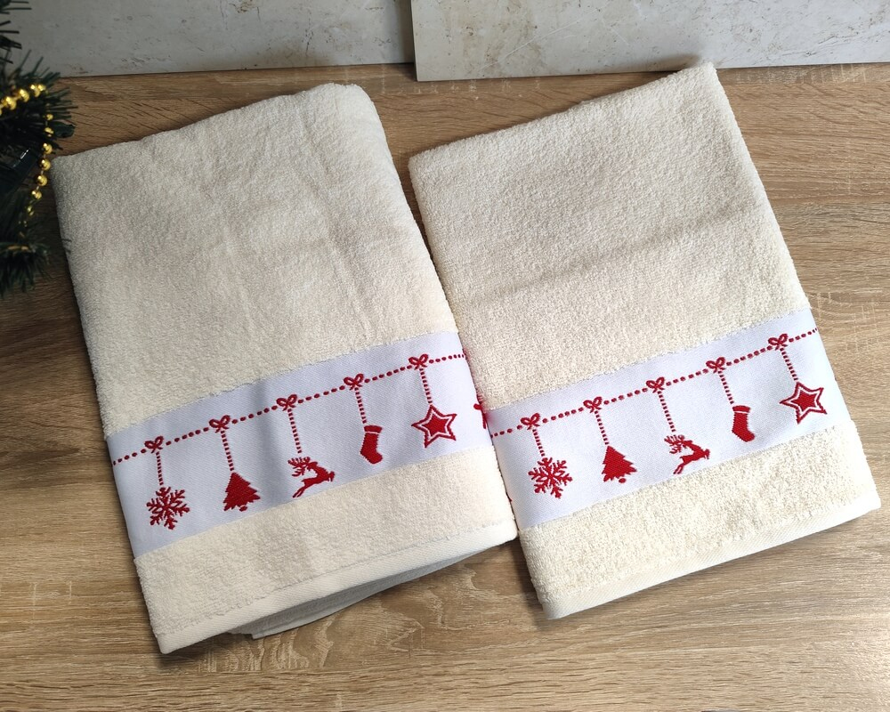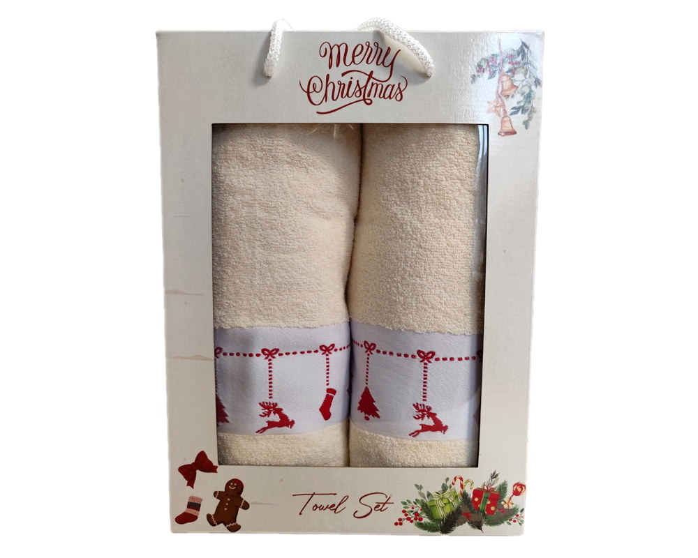 Набор новогодних полотенец Gulcan 50x90+70х140 Merry Christmas Decorations Beige