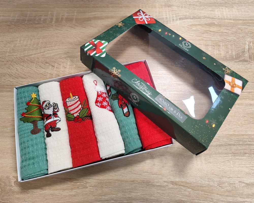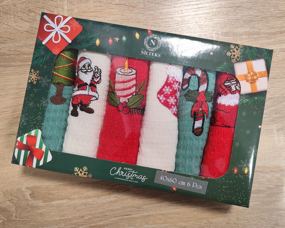 Набор новогодних полотенец кухонных Nilteks 6 штук 40х60 вафельные с вышивкой Christmas 5