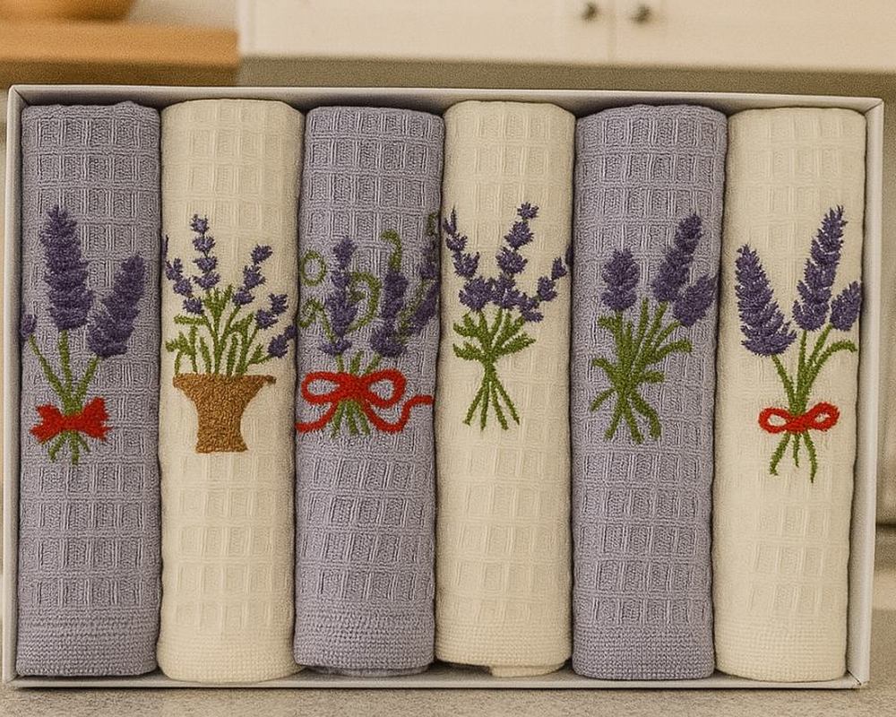 Набор полотенец кухонных Nilteks 6 штук 40х60 вафельные с вышивкой Lavanta 2