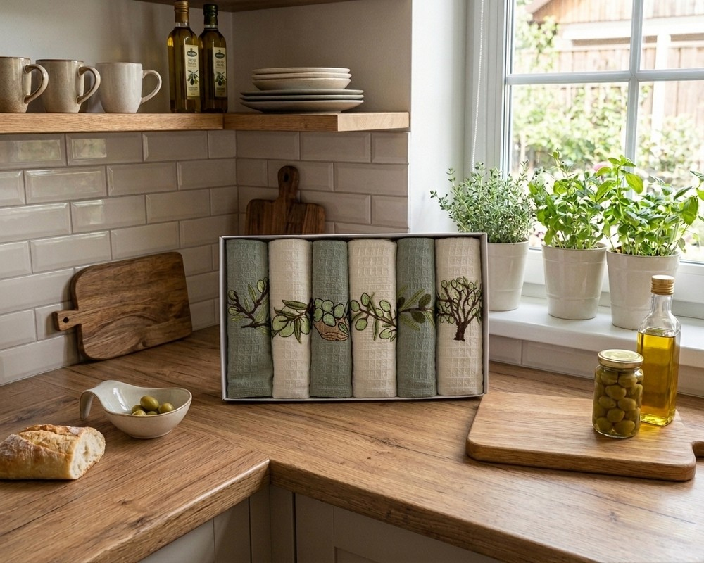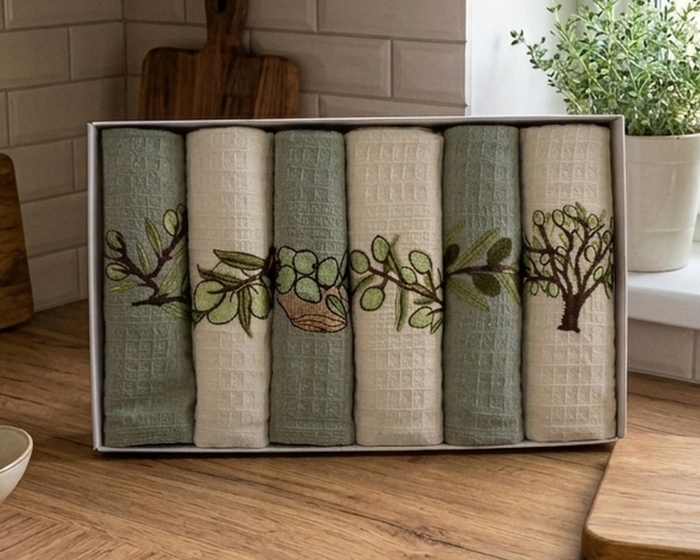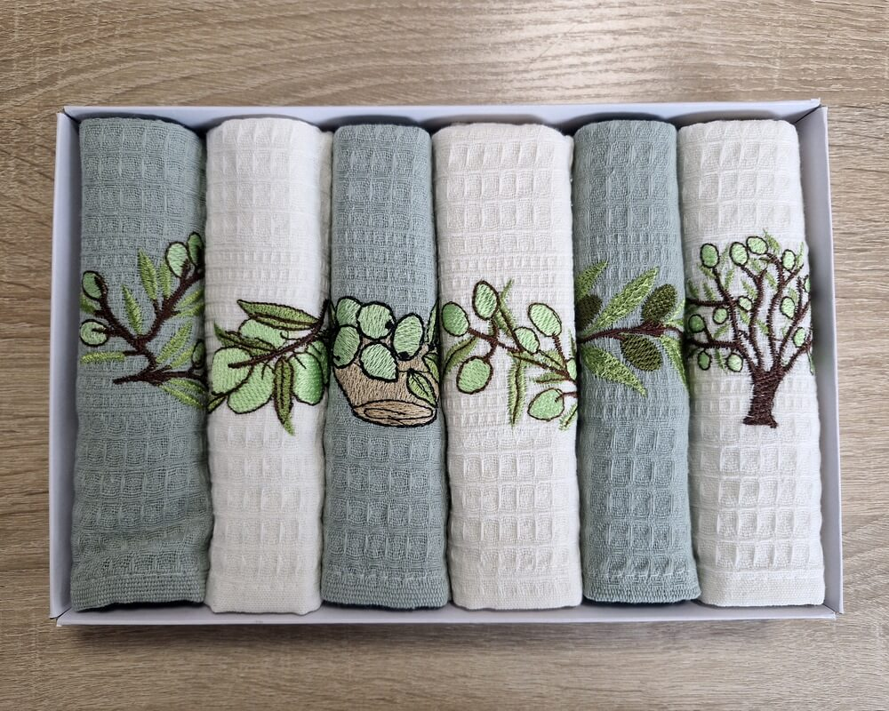 Набор полотенец кухонных Nilteks 6 штук 40х60 вафельные с вышивкой Olive 3
