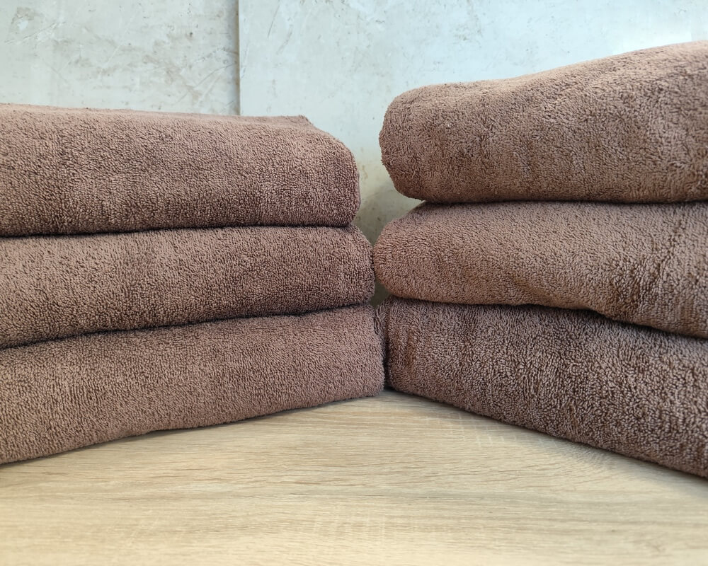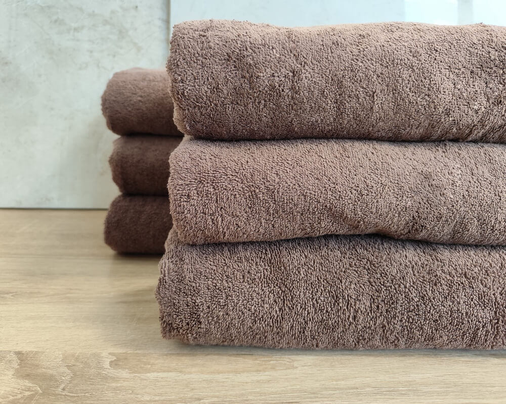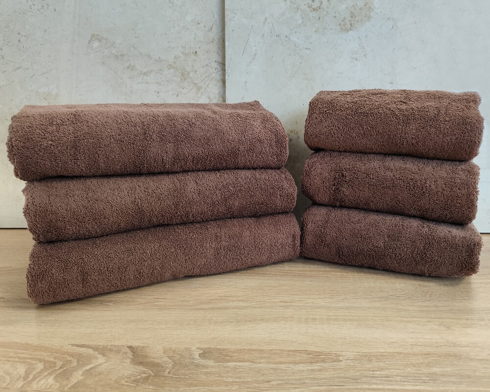 Набор турецких махровых однотонных полотенец Zeron 3 штуки 50х90 + 3 штуки 70х140 Brown плотность 500 г/м2