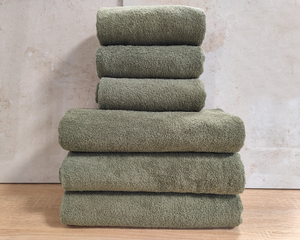 Набор турецких махровых однотонных полотенец Zeron 3 штуки 50х90 + 3 штуки 70х140 Green плотность 500 г/м2