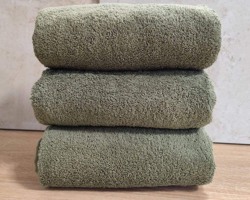 Набор турецких махровых однотонных полотенец Zeron 3 штуки 50х90 Green плотность 500 г/м2