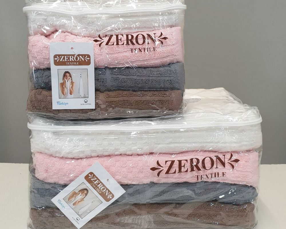Набор турецких махровых полотенец Zeron 4 штуки 50х90+4 штуки 70х140 Vip жаккард Miran