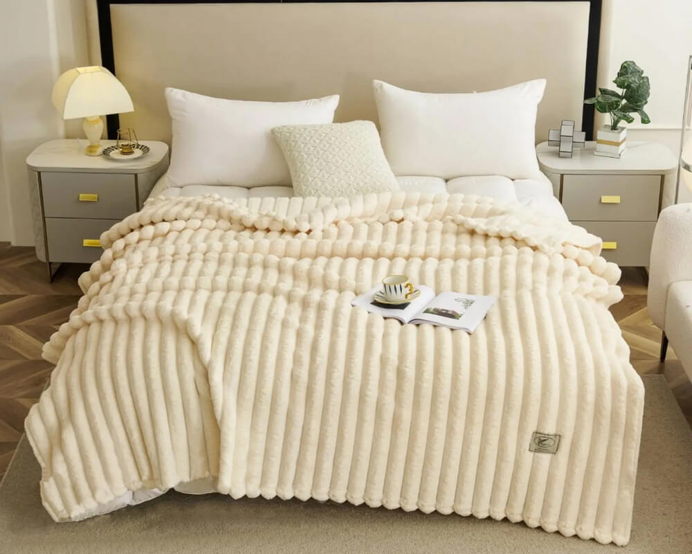 Плед-покрывало Koloco Королевский шарпей полоска 6 см 180х200 кремовый двуспальный