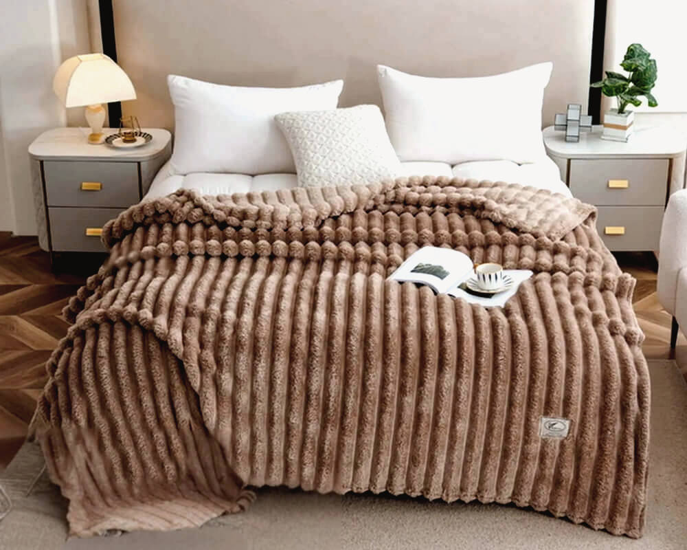 Плед-покрывало Koloco Королевский шарпей полоска 5 см 200х230 шоколад евро