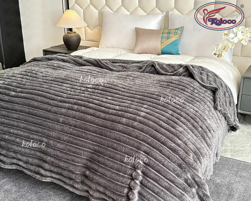 Плед-покрывало Koloco Королевский шарпей полоска 5 см 220х230 графит евро