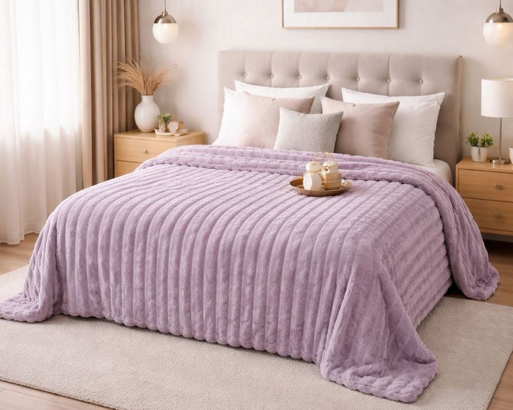 Плед-покрывало Koloco Королевский шарпей полоска 7 см 210х230 лиловый евро