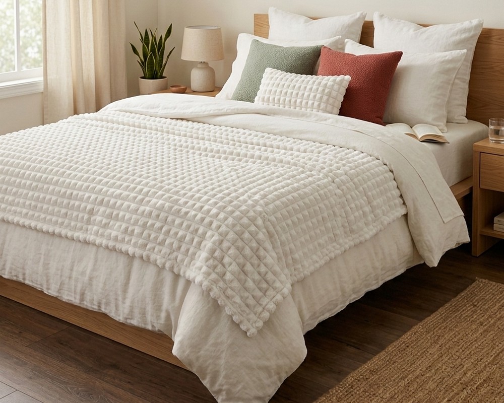 Плед-покрывало Koloco Кубик 3Д 200х230 молочный евро