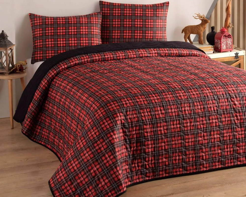 Покрывало стеганое двустороннее EnLora Home ранфорс Iskoc Kırmızı 240х220