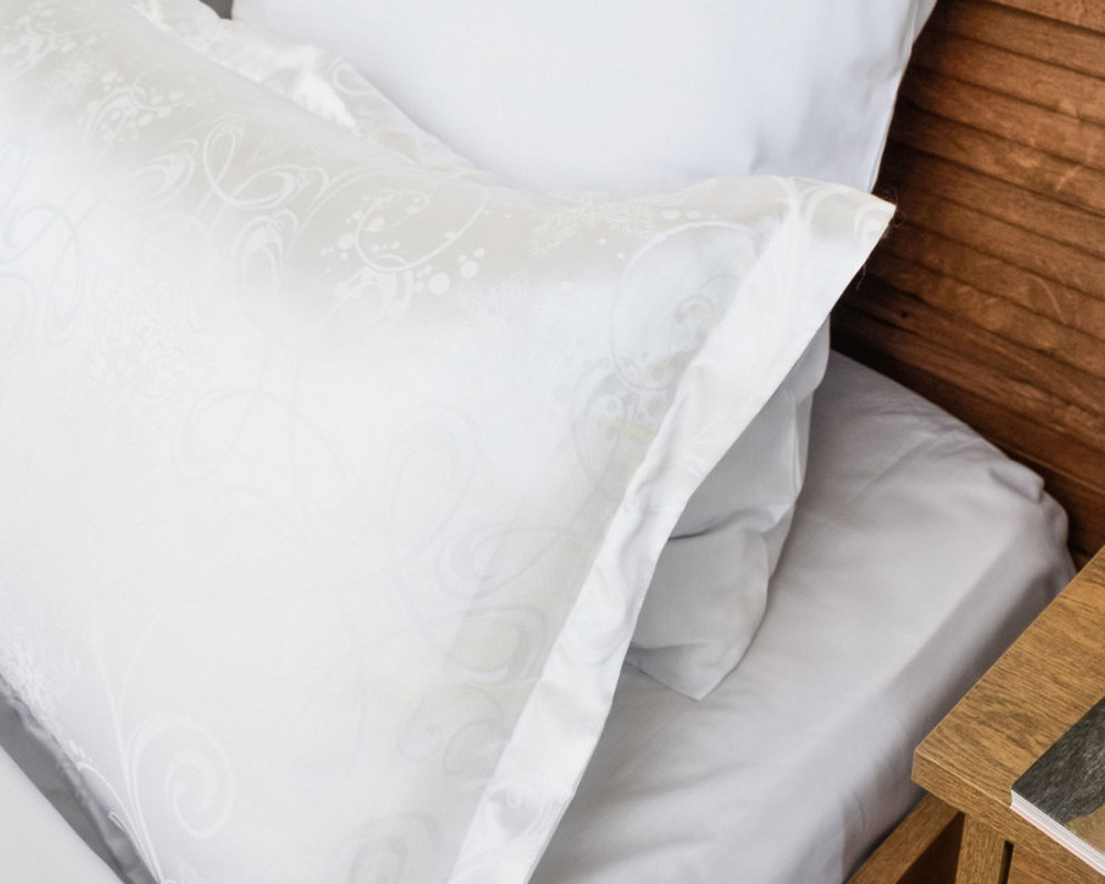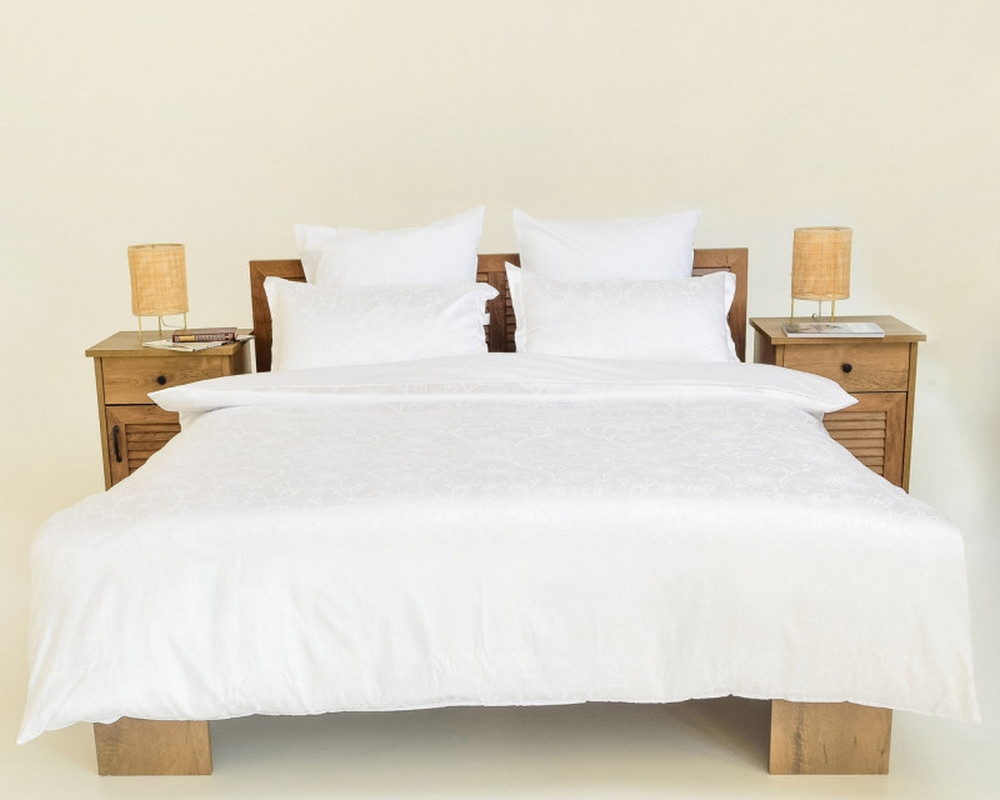 Пододеяльник: верх – жаккардовая ткань, низ – однотонная гладь сатин люкс, застежка молния;