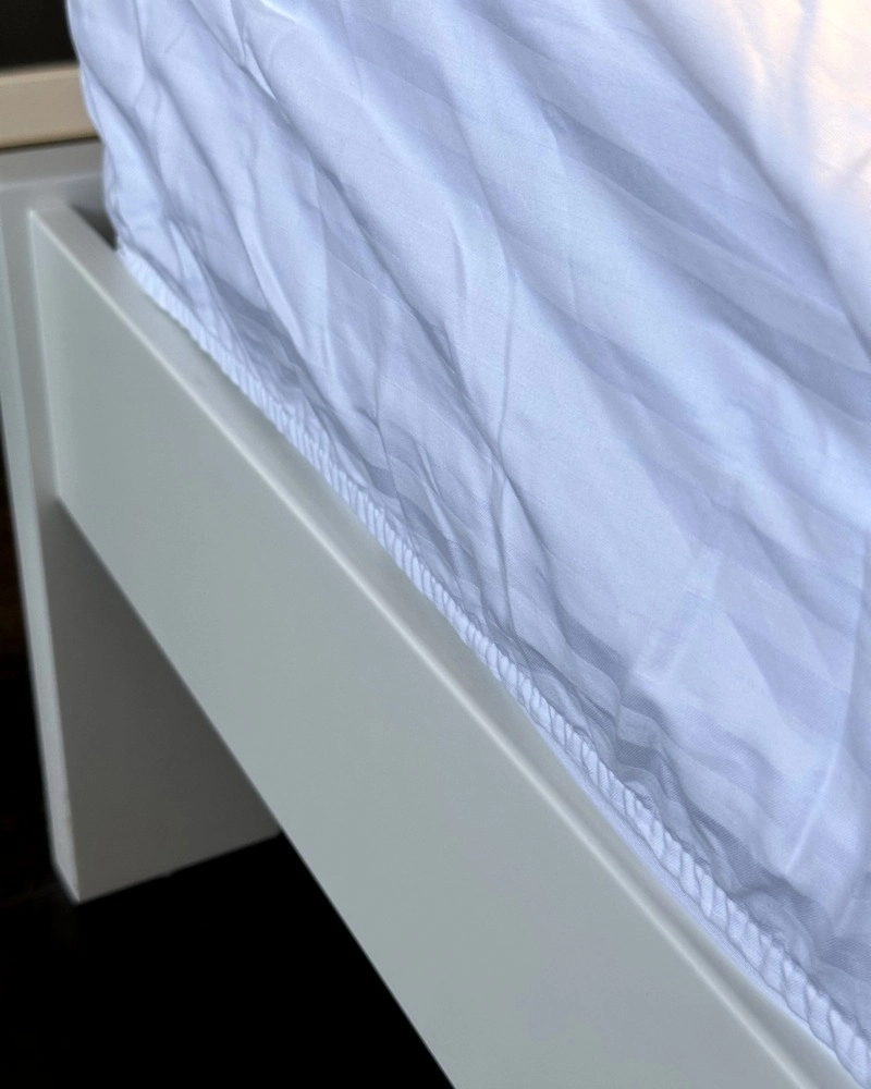 Простынь на резинке LARA сатин-страйп LUX 1х1 белая 90х200х25 см ОПТ
