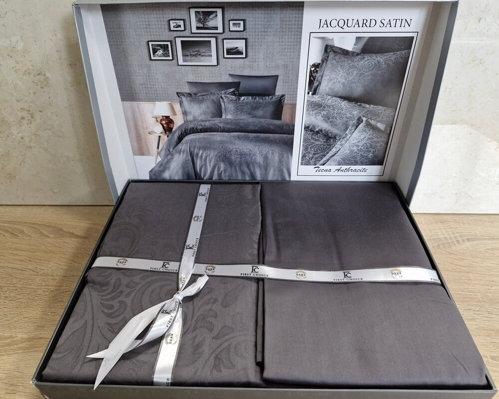 Турецкое постельное белье First Choice сатин-жаккард Tecna anthracite евро