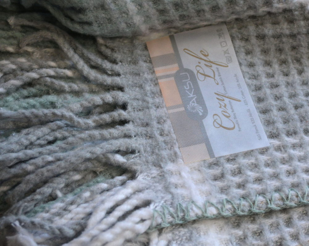 Турецкий хлопковый плед Aksu Cozy Life Inka Mint 180×220