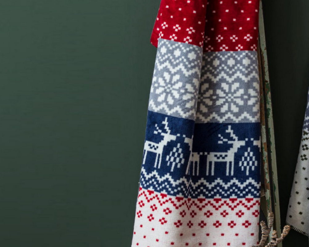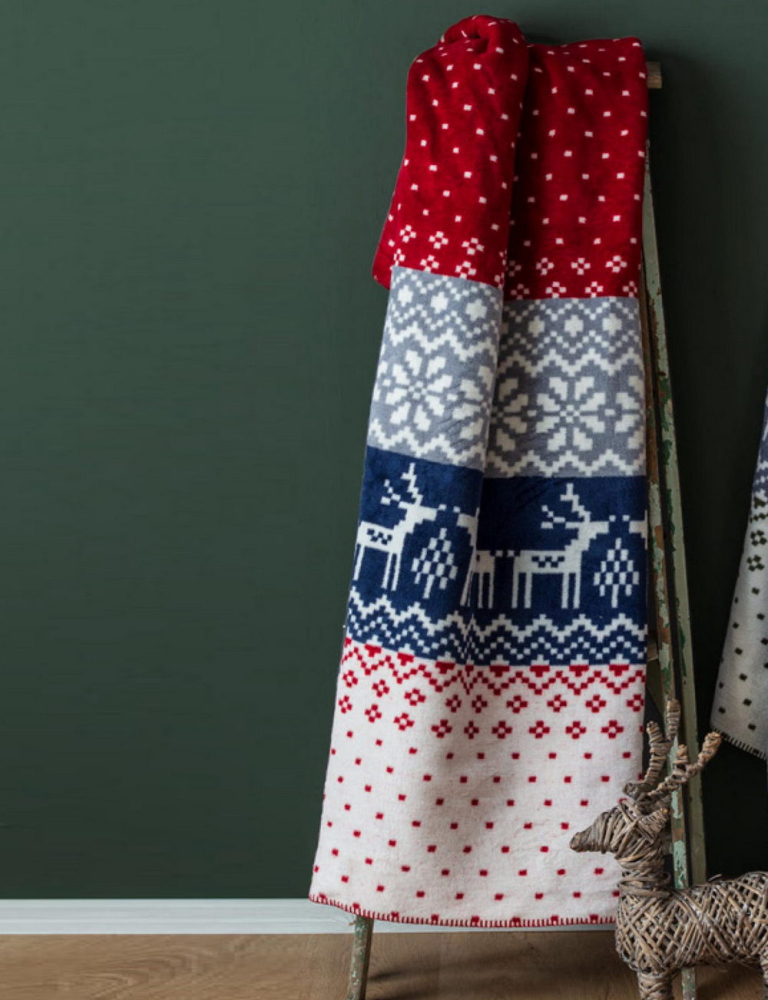 Турецкий новогодний хлопковый плед Sesli 23136 150х200 см