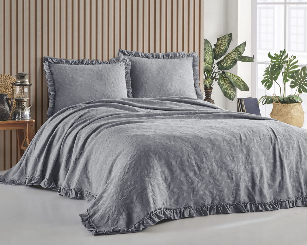 Турецкое муслиновое покрывало Saheser 240х260 с наволочками 50х70 Ilda Gri