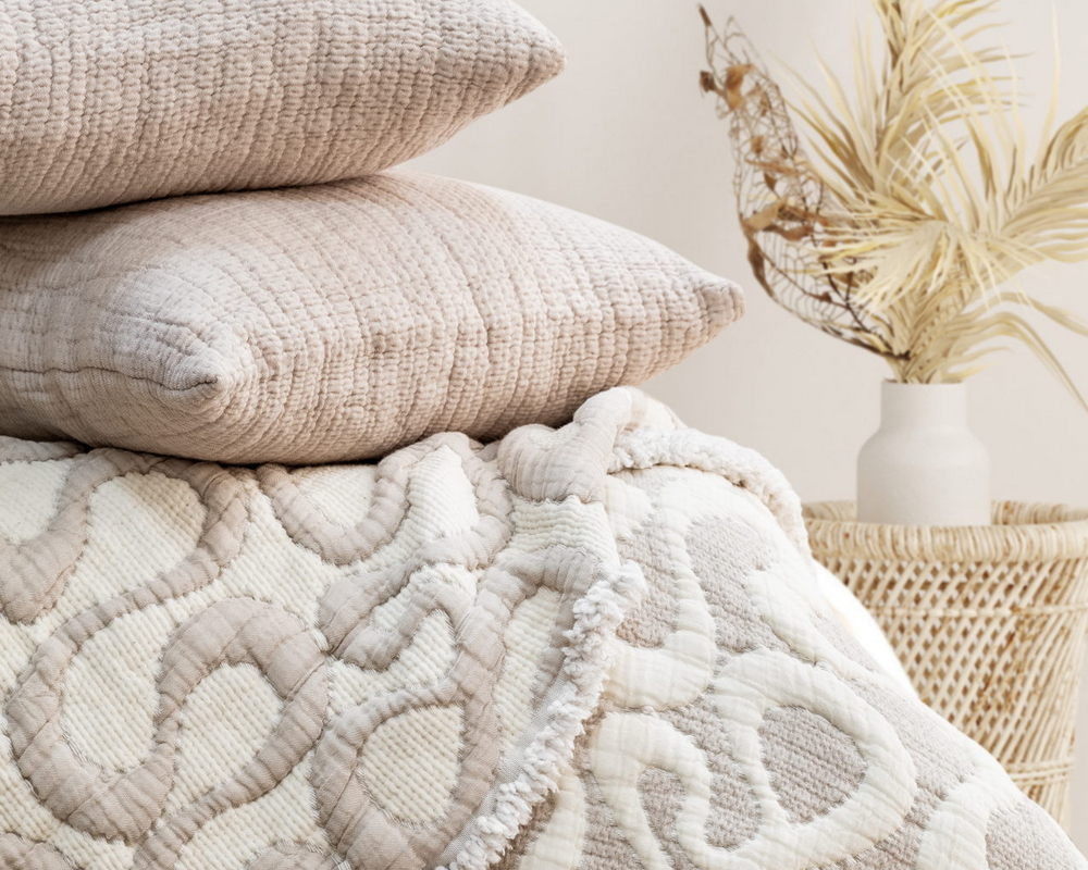 - Характеристики РазмерЕвроРазмеры240х260Материалмуслин, хлопковыеЦветБежевыйНазначениеКомплектыдекоративная наволочкаОсобенностиДвустороннееТипПокрывала + наволочкиСтрана регистрации брендаТурцияСтрана-производитель товара