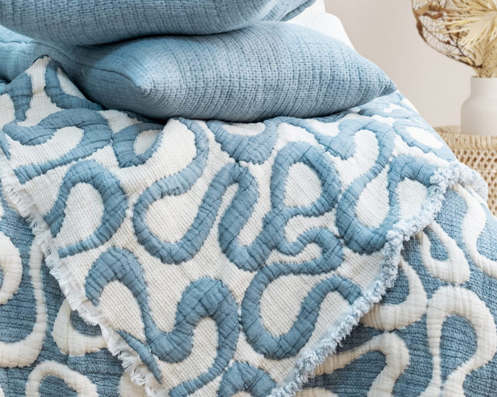 Турецкое муслиновое покрывало Saheser 240х260 с наволочками 50х70 Mervis Mavi