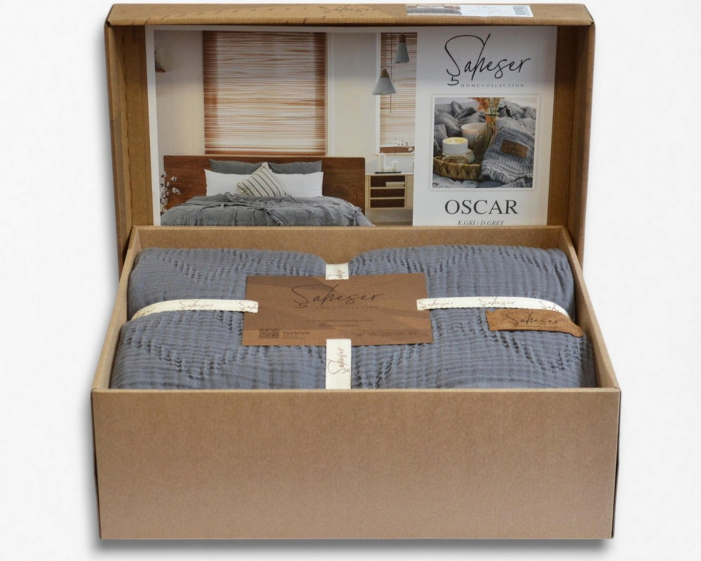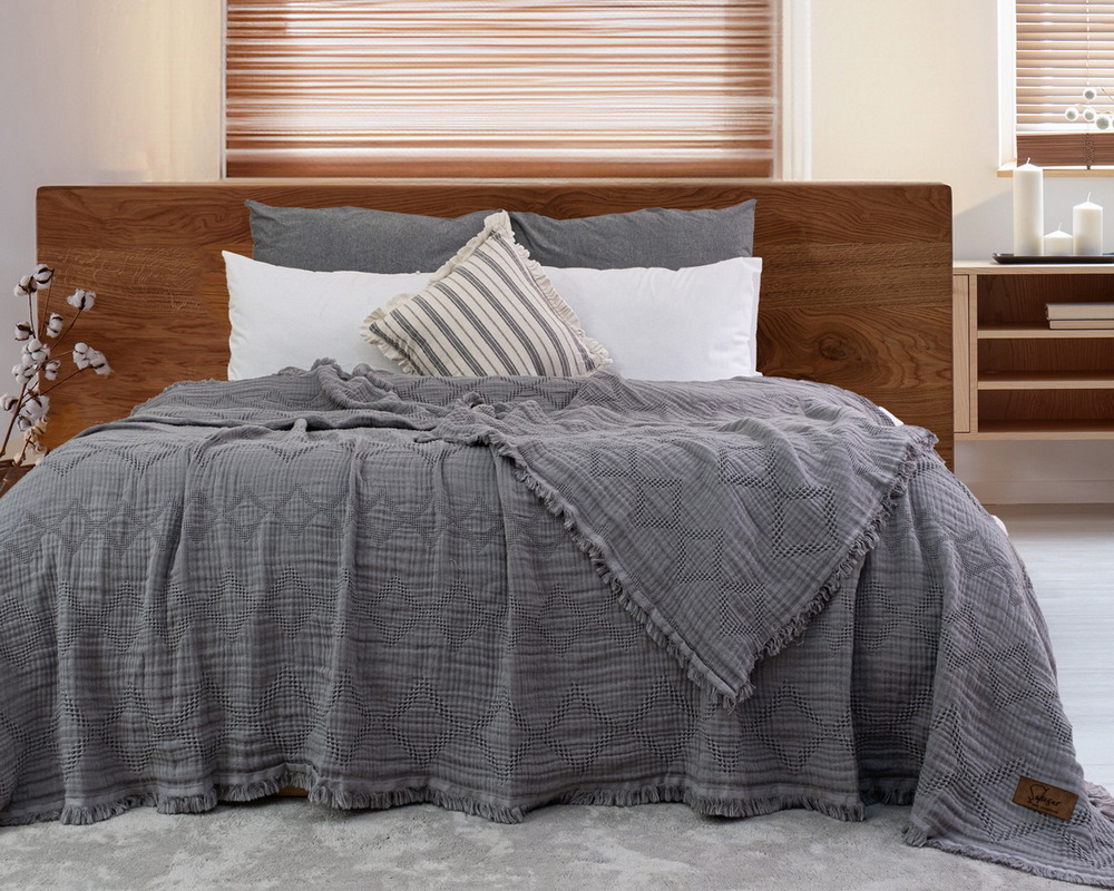 Турецкое муслиновое покрывало Saheser Oscar 240х260 Gri