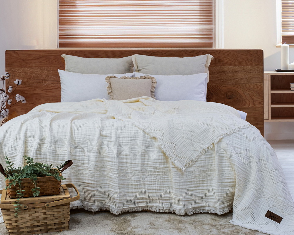 Турецкое муслиновое покрывало Saheser Oscar 240х260 Krem