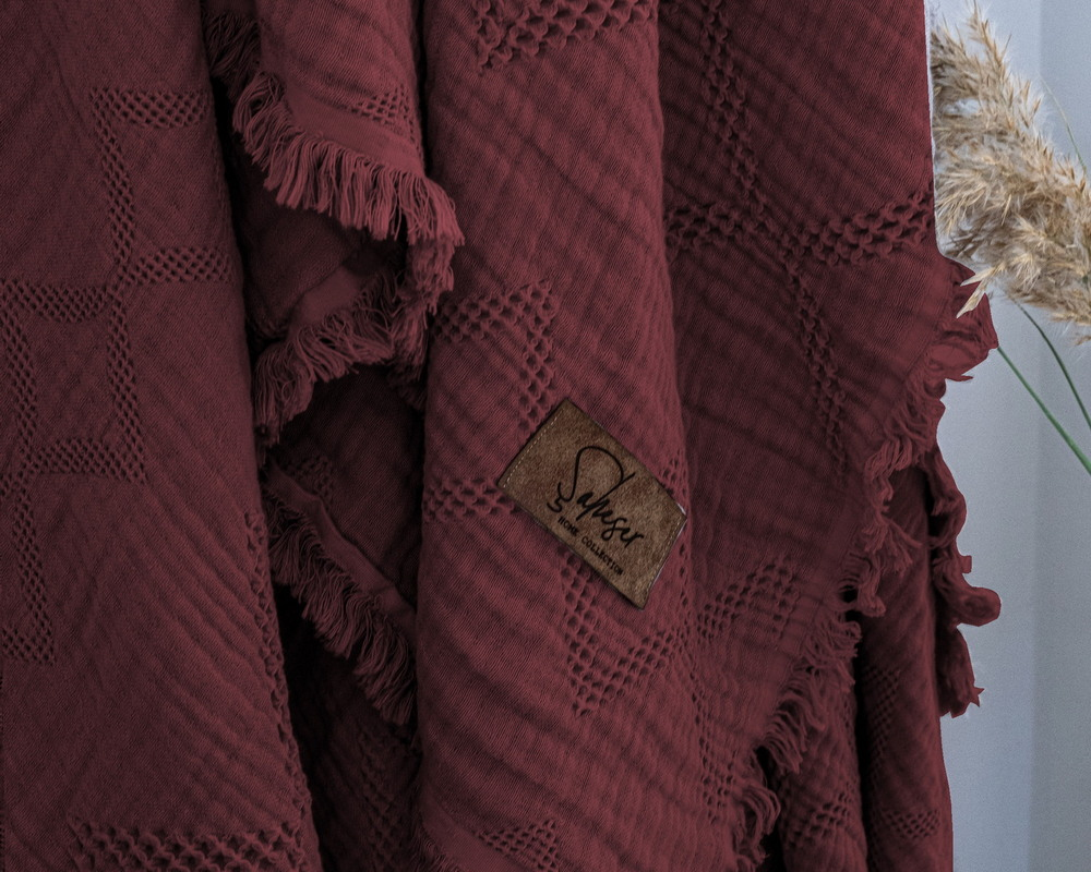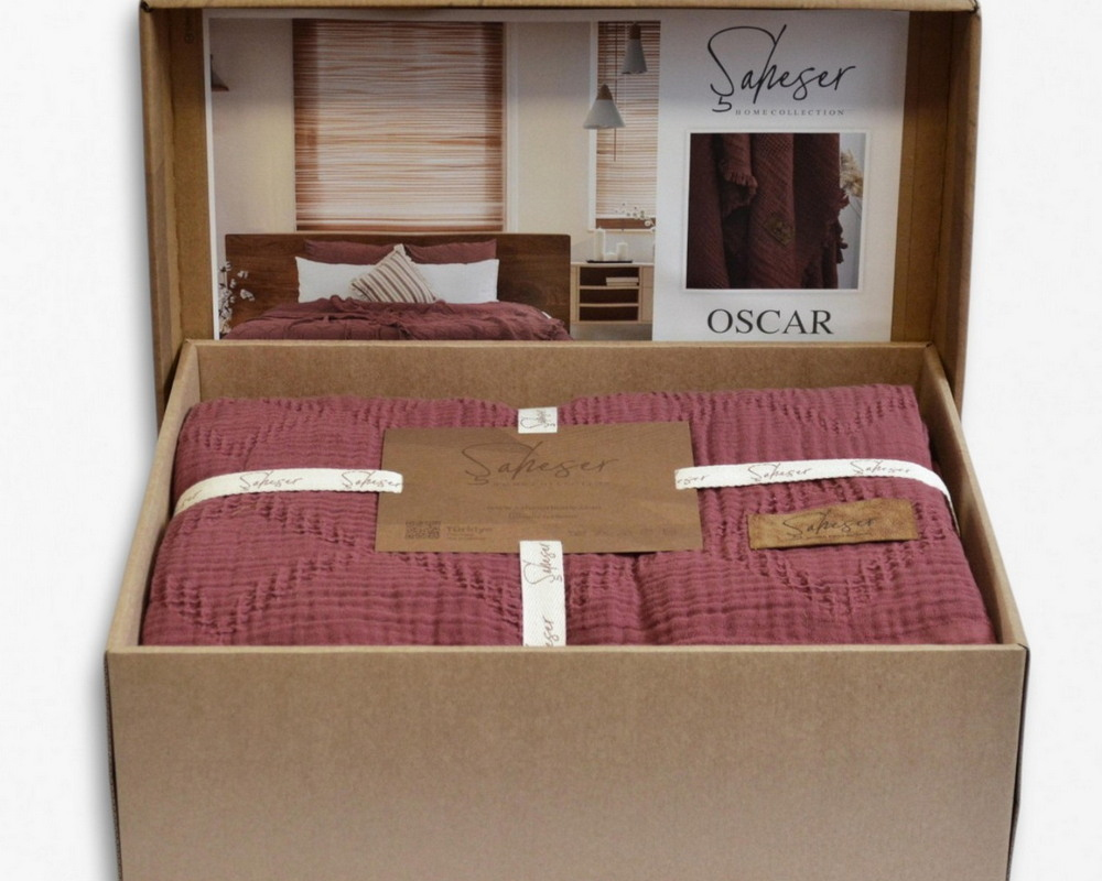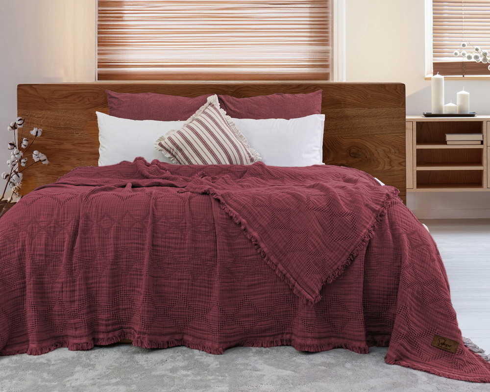 Турецкое муслиновое покрывало Saheser Oscar 240х260 Ruby Kirmizi