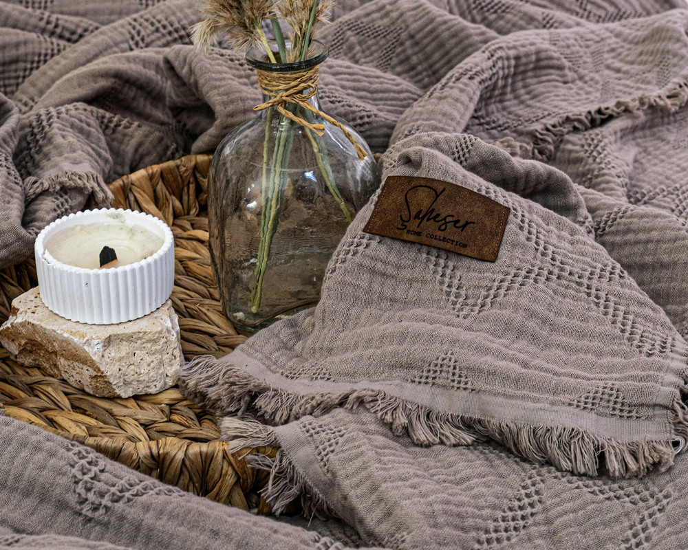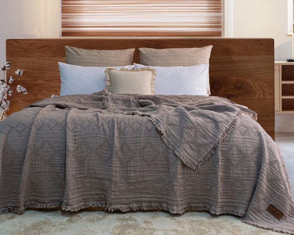 Турецкое муслиновое покрывало Saheser Oscar 240х260 Vizon