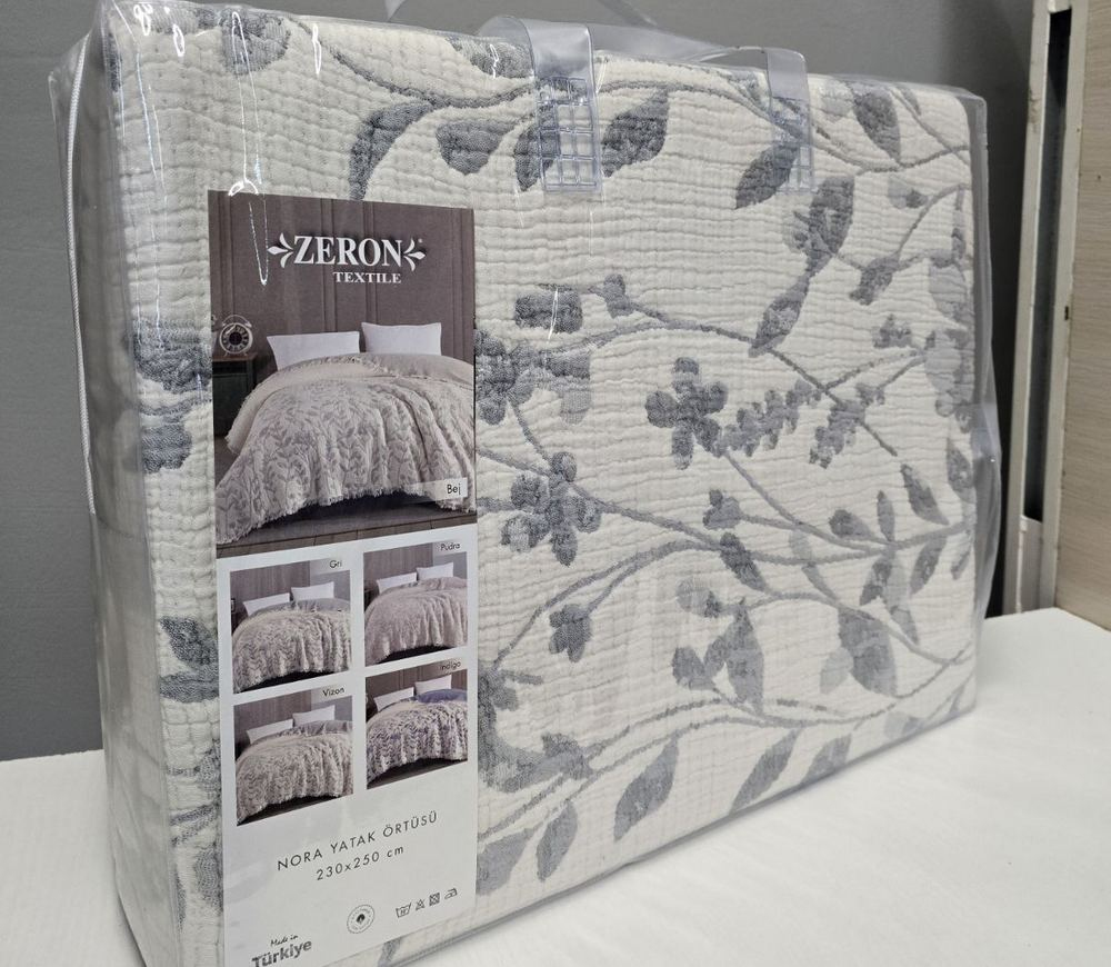 Турецкое муслиновое покрывало Zeron JACQUARD exclusive 230х250 Nora Gri