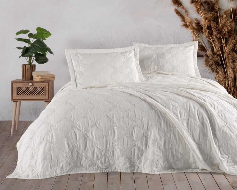 Турецкое покрывало из вареного хлопка Maribor Natural Creations 240х260 с наволочками 50х70 Cream