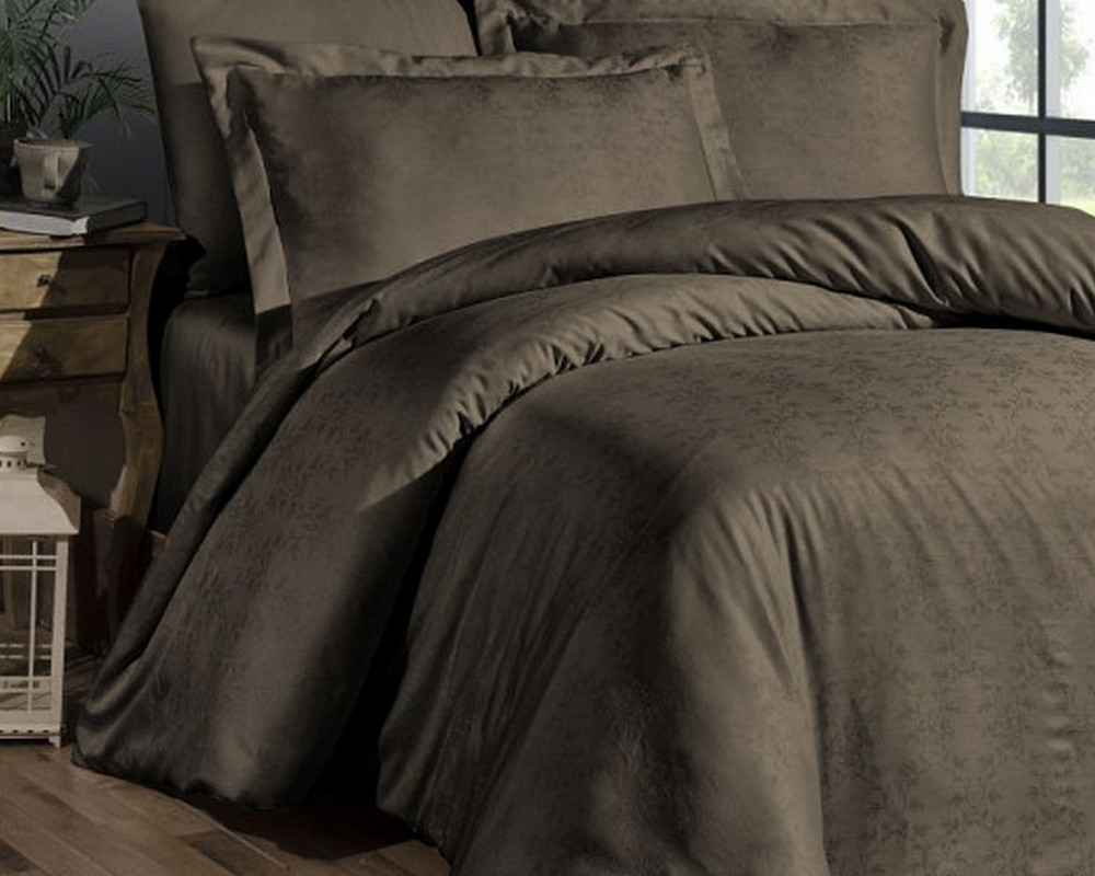 Турецкое постельное белье First Choice сатин-жаккард Amore Brown евро