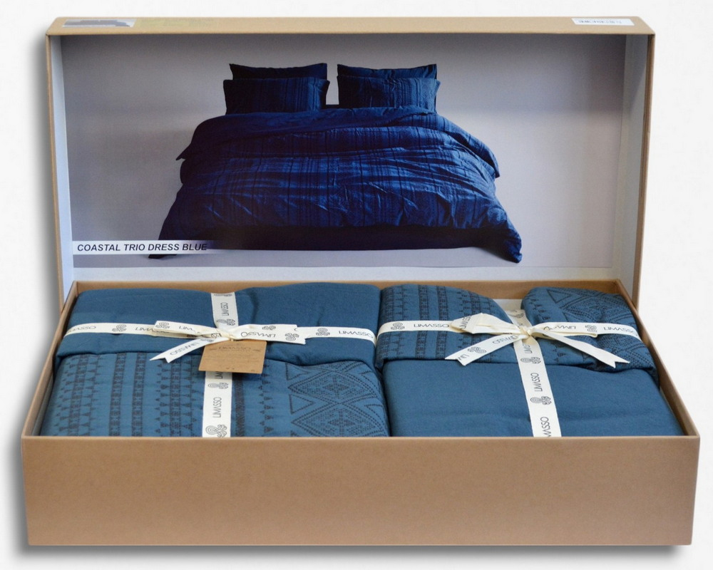 Турецкое постельное белье из вареного хлопка Limasso Stonewashed Ranforse 200 х 220 см Coastal Trio Dress Blue