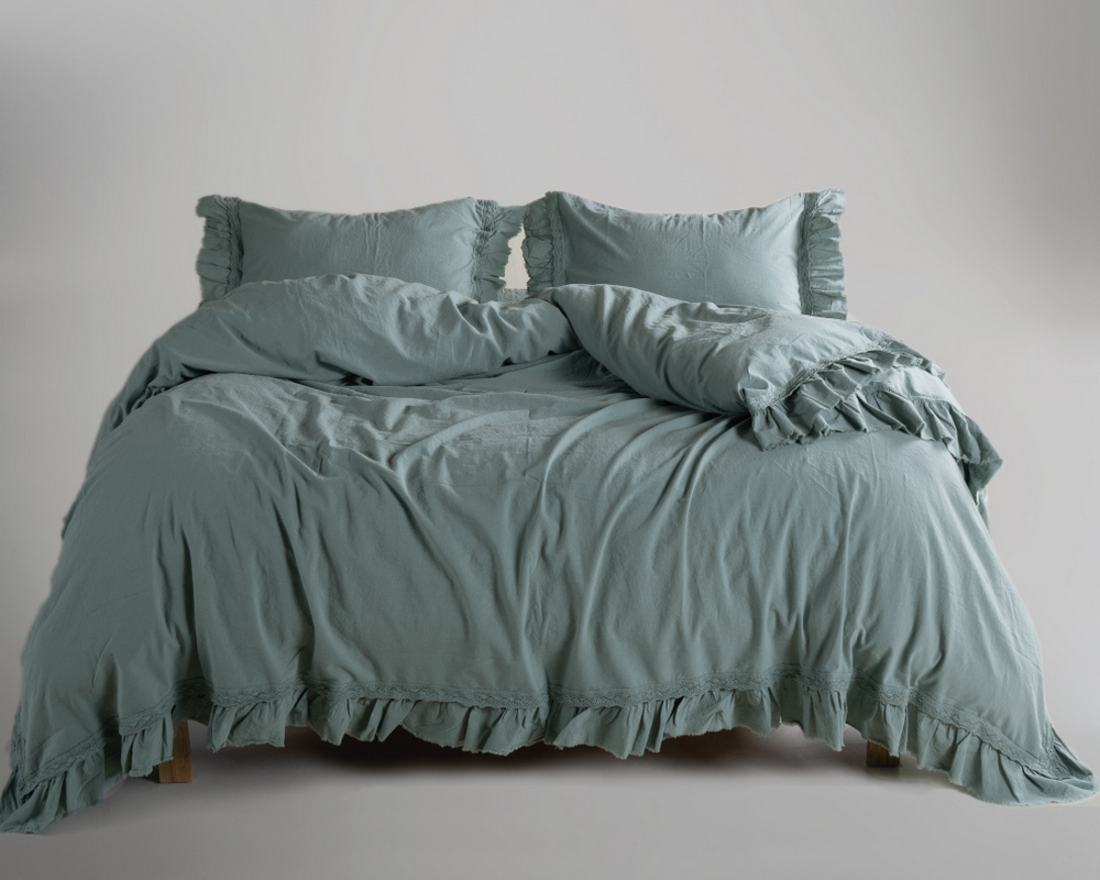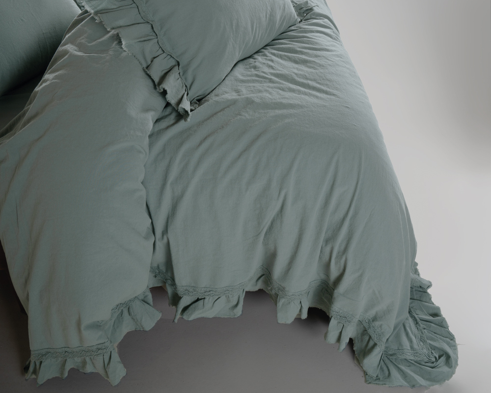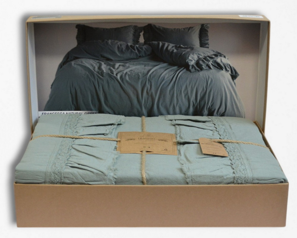 Турецкое постельное белье из вареного хлопка Limasso Stonewashed Ranforse Francesca 200 х 220 см Natural Green