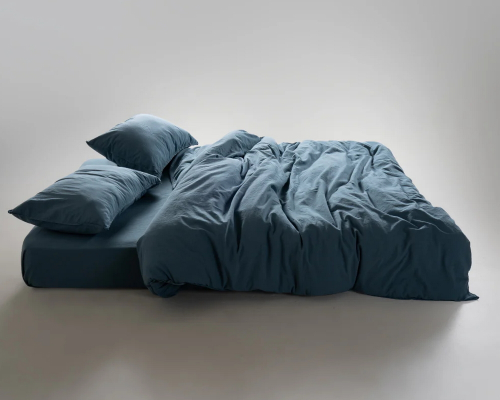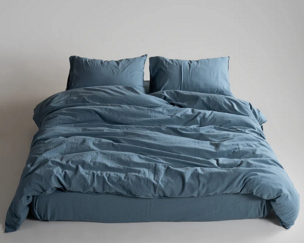 Турецкое постельное белье из вареного хлопка Limasso Stonewashed Ranforse семейное Akdeniz Mavisi