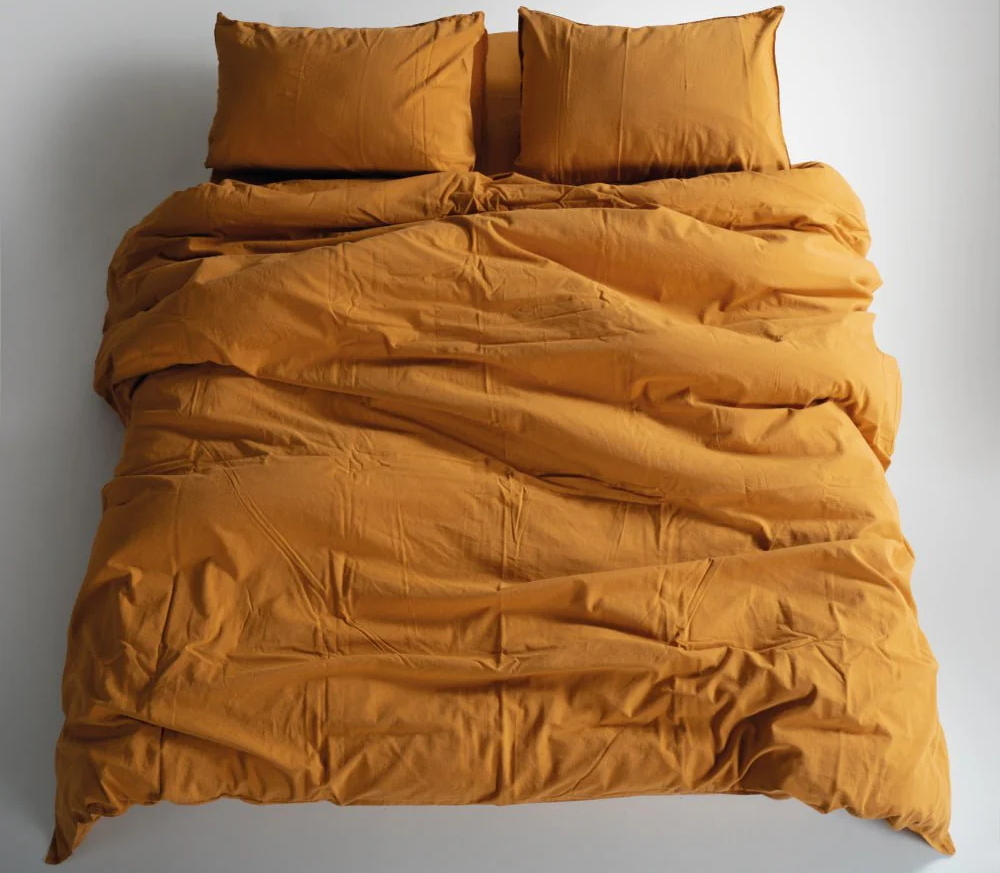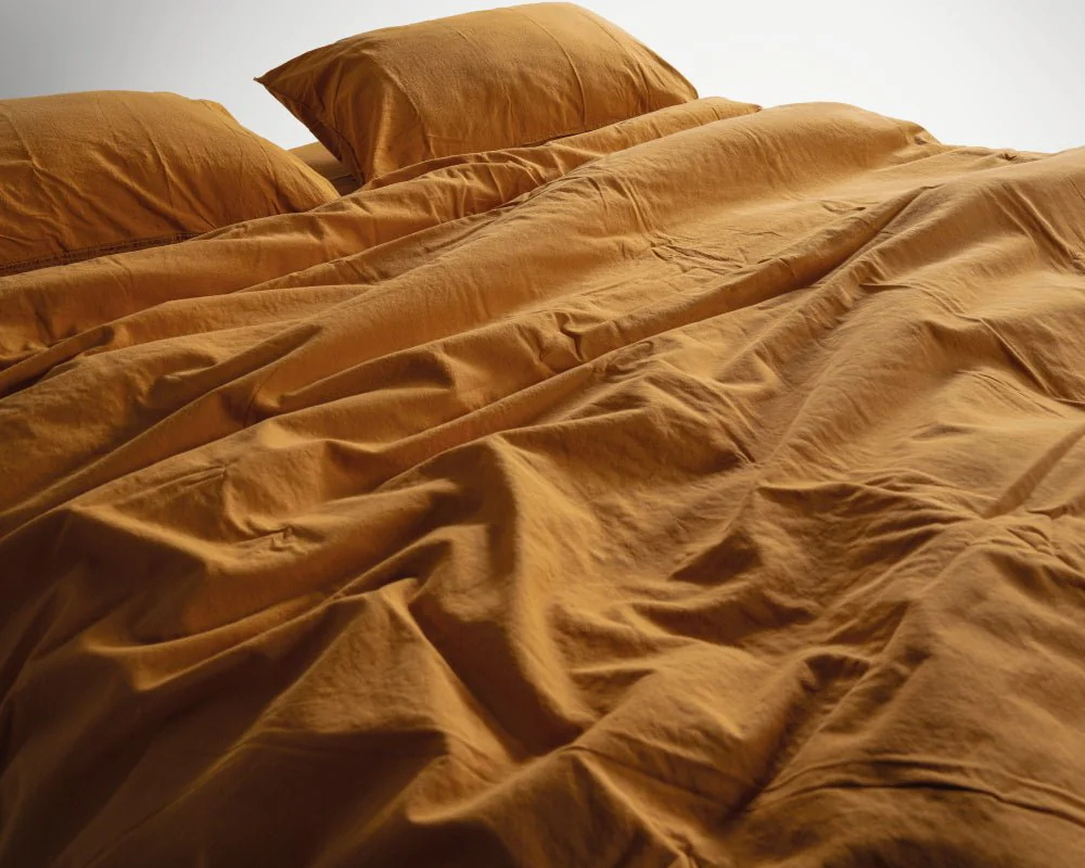 Турецкое постельное белье из вареного хлопка Limasso Stonewashed Ranforse семейное Mustard