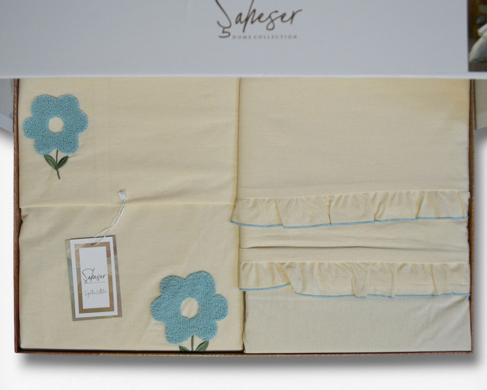 Турецкое постельное белье из вареного хлопка Saheser Stonewashed Ranforse 200 х 220 см Florita Mint