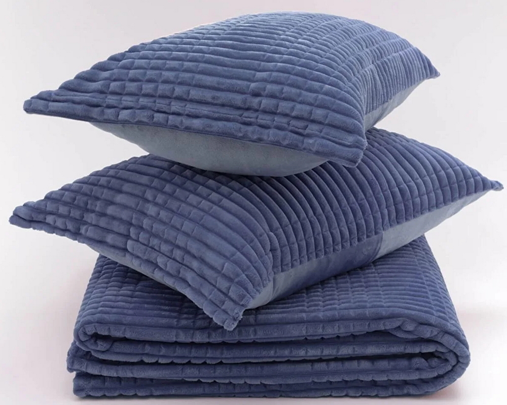 Турецкое велюровое покрывало Merinos 220 x 240 см Modern Line Lacivert с наволочками 50х70