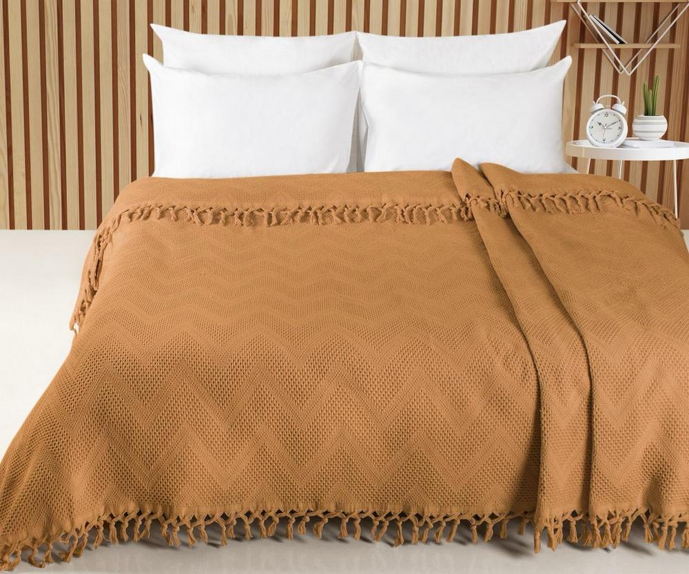 Турецкое жаккардовое покрывало Saheser Zick - Zack 220×240 см Kahve