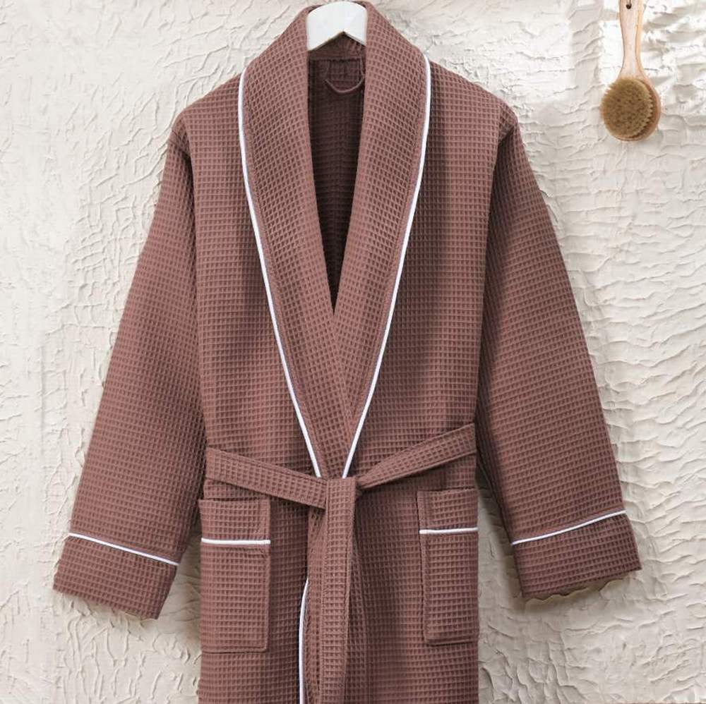 Халат вафельний з кантом ZERON EXCLUSIVE pike bornoz Kahve ХXL