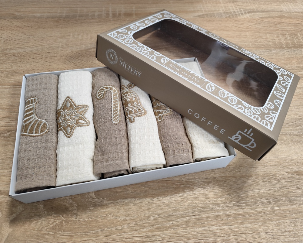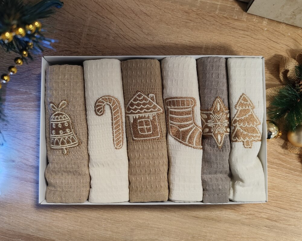 Набір новорічних рушників для кухні Nilteks 6 штук 40х60 вафельні з вишивкою Christmas 4