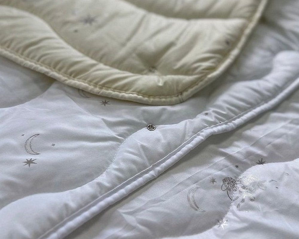 У комплекті дві ковдри: бежева щільністю 350 г/м2 та біла щільністю 150 г/м2. Поєднуються кнопками