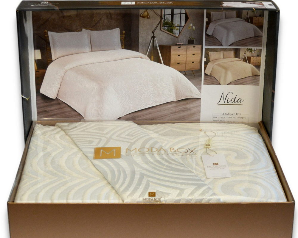Покривало шенілове Modabox 240х260 Nida Krem з наволочками 50х70