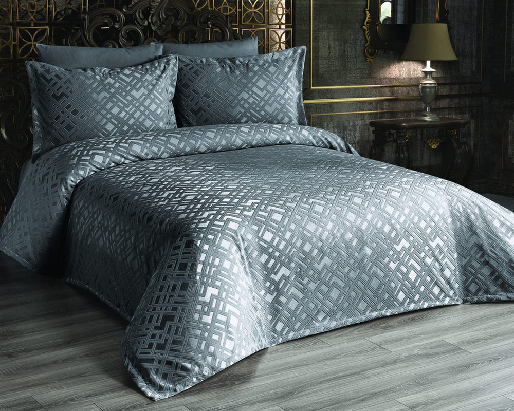 Покривало шенілове Modabox 240х260 Sezen Antrasit з наволочками 50х70