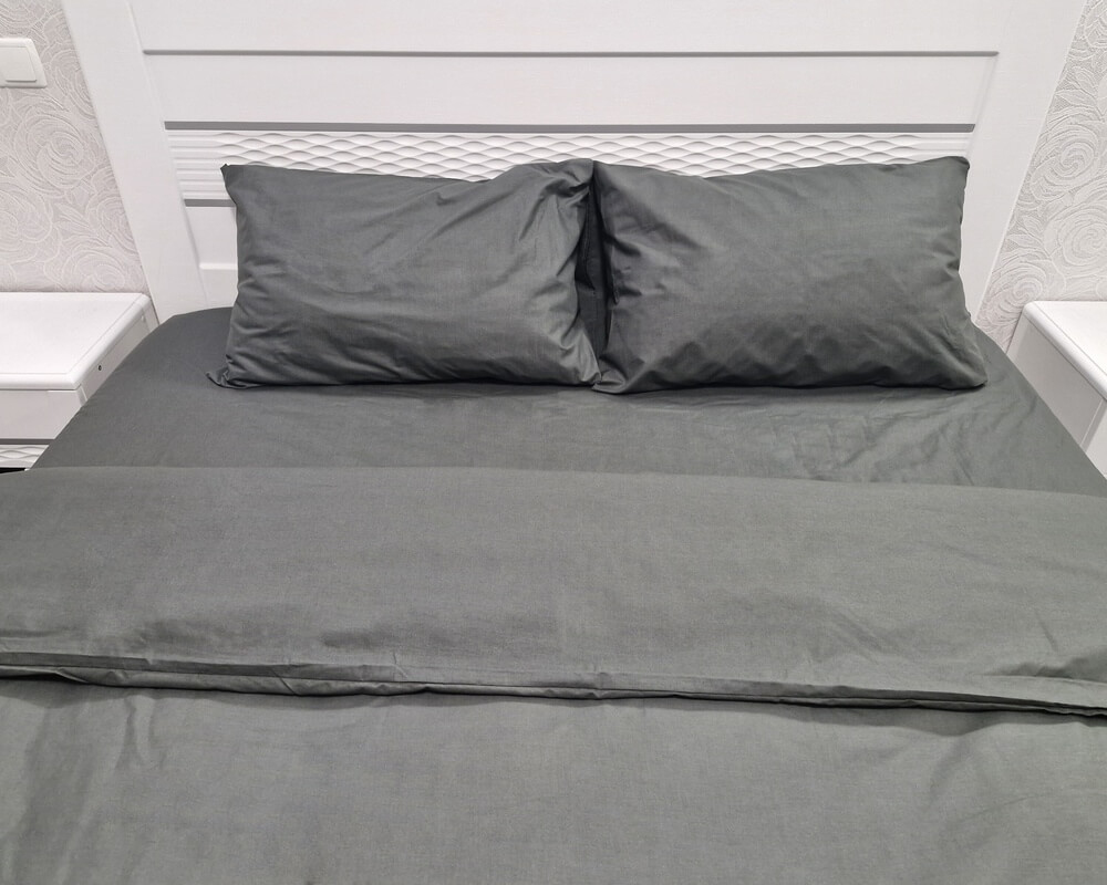 - Характеристики РозмірКолірГрафіт, ОднотоннаРозмір наволочки50х70 см - 2штРозмір простирадла на резинціРозмір підковдри200х220 смСкладБязьКомплектаціяНаволочка - 2шт, Простирадло на резинці - 1шт, Підковдра - 1штДизайнЗастібкаЗ вирізом внизуКомплектністьКраїна-виробник