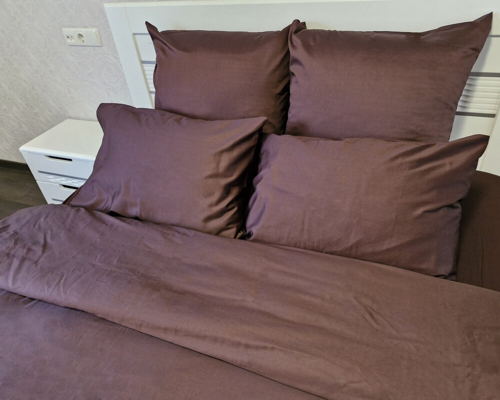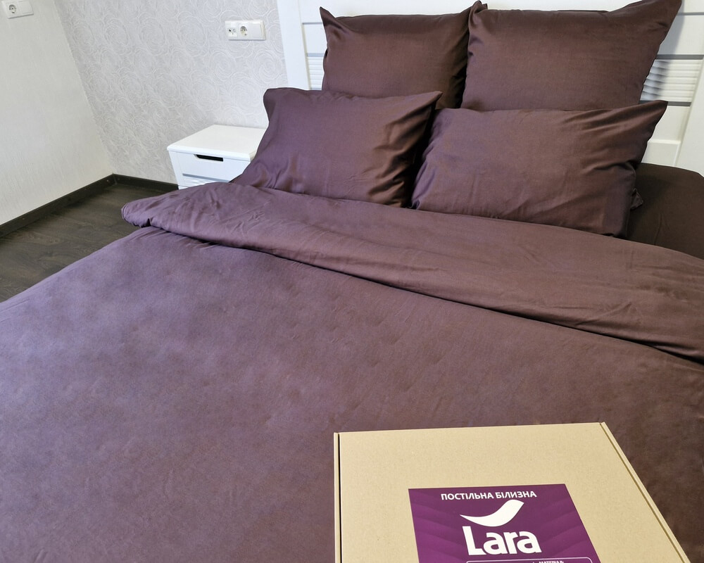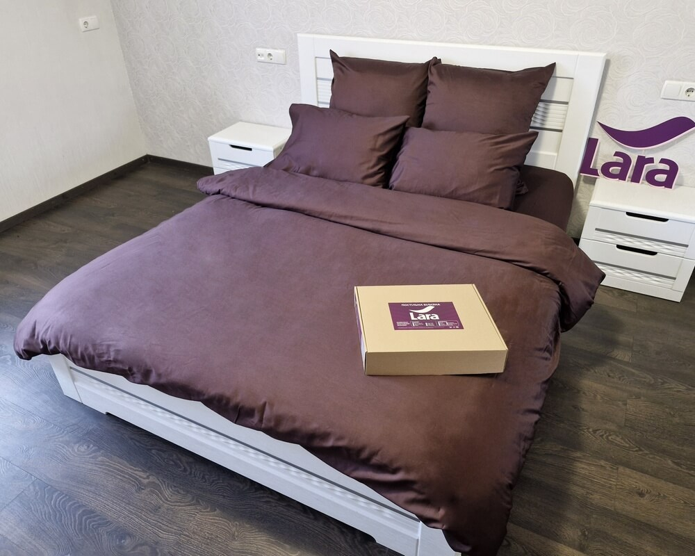 Постільна білизна LARA сатин LUX однотонна євро з простирадлом на резинці 160х200х25 d13260e160 BROWN 4 наволочки у комплекті(копия)