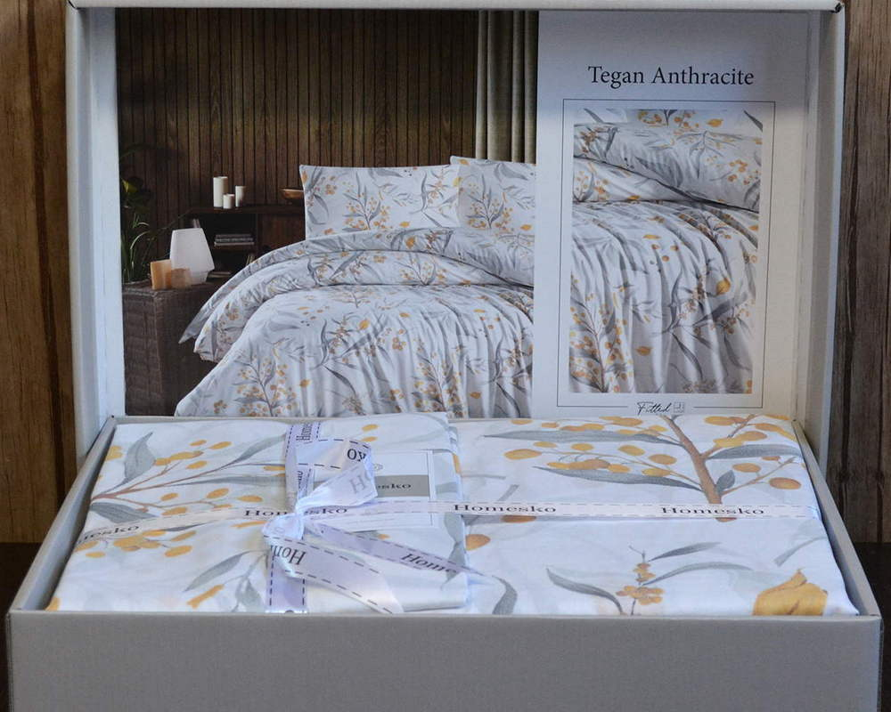 Турецька постільна білизна First Choice Homesko Ranforse Tegan Anthracite євро з простирадлом на резинці 160х200х30см