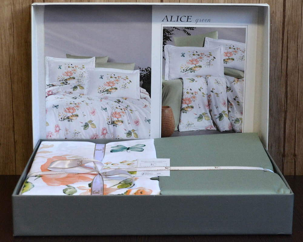 Турецька постільна білизна First Choice Cotton Satin Alice Green євро