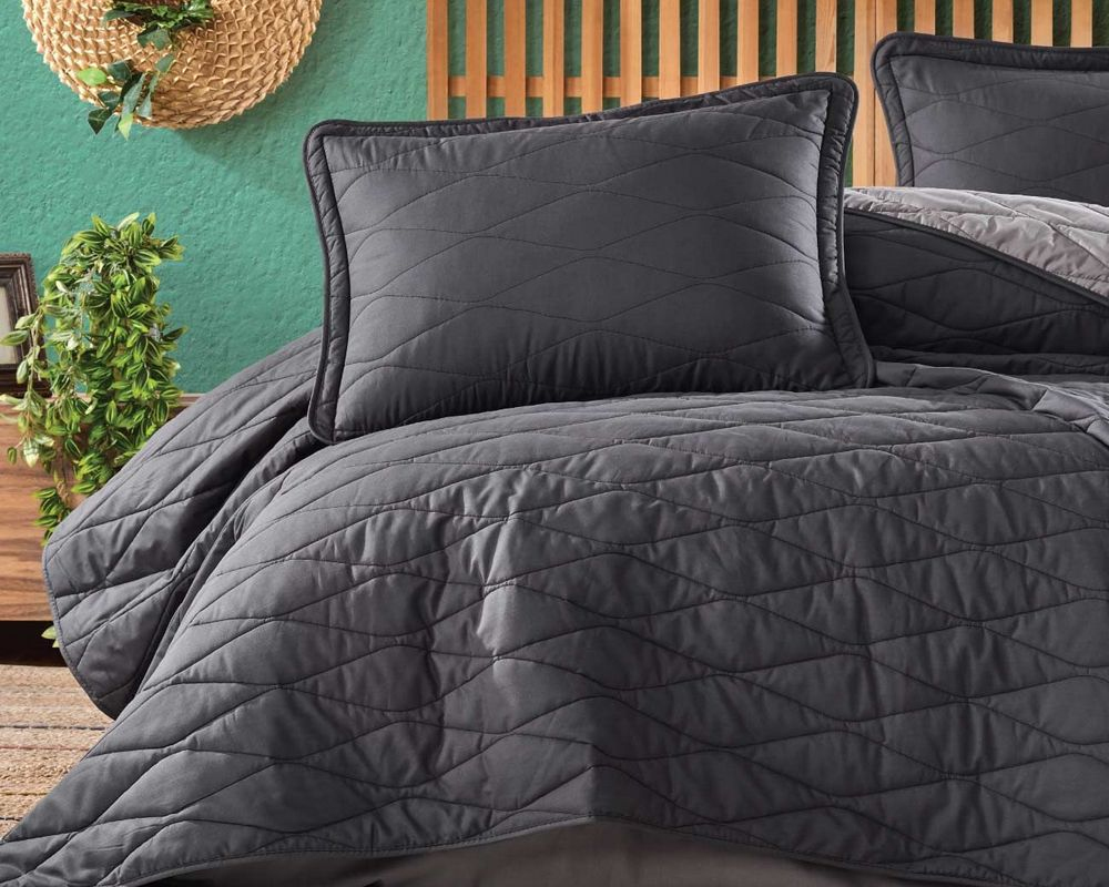 Турецьке стьобане покривало Clasy 180 x 240 см Lorna Antrasit з наволочкою 50х70