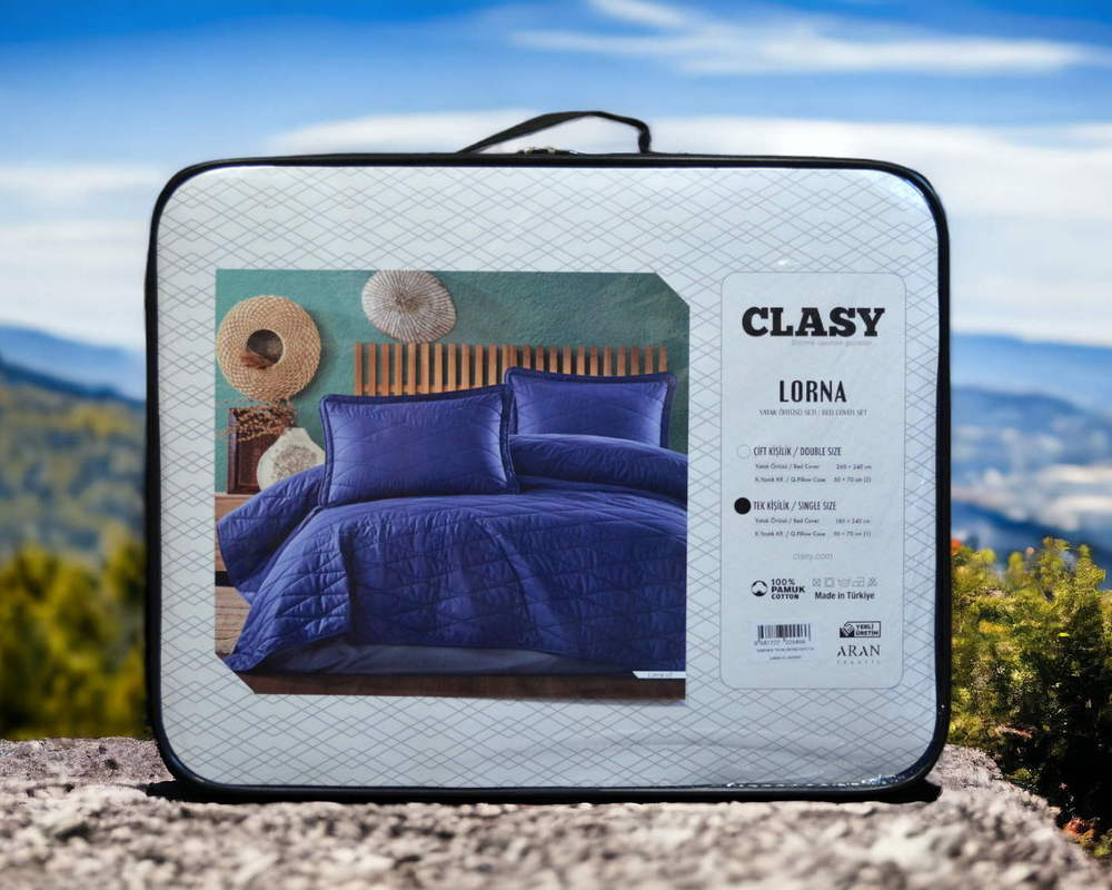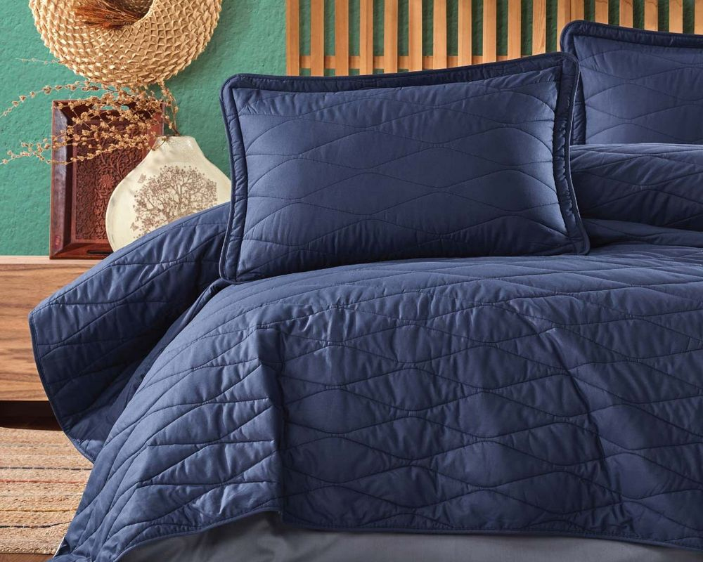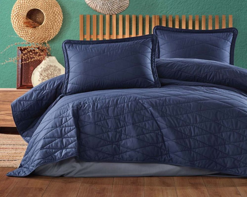 Турецьке стьобане покривало Clasy 180 x 240 см Lorna Lacivert з наволочкою 50х70