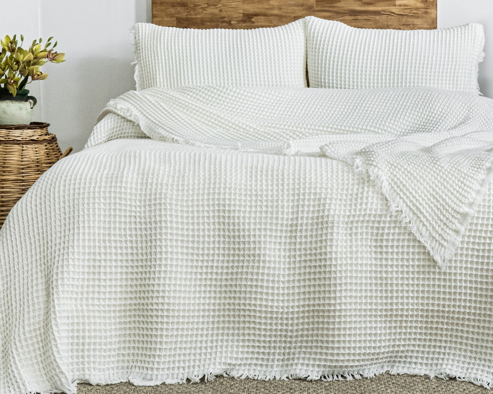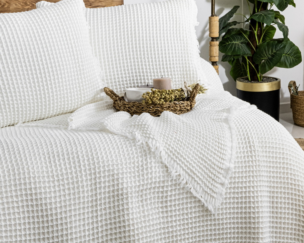 Турецьке вафельне покривало Saheser Norah 240 х 260 см Cream з наволочками 50х70