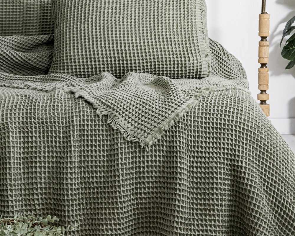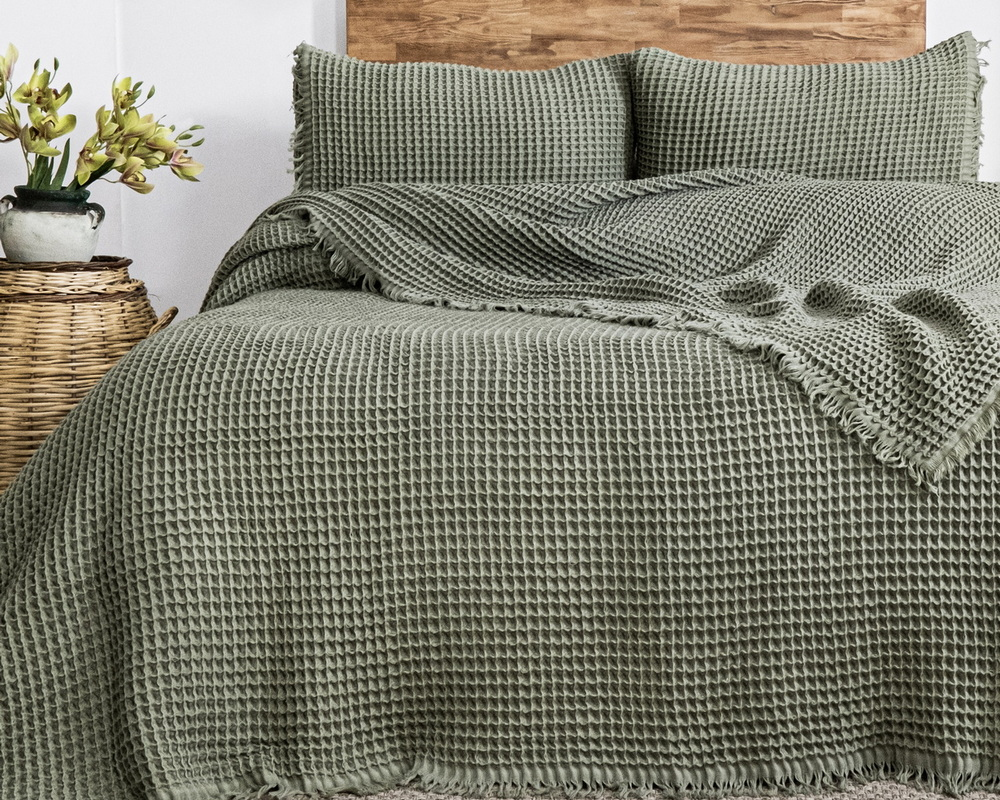 Турецьке вафельне покривало Saheser Norah 240 х 260 см Khaki з наволочками 50х70